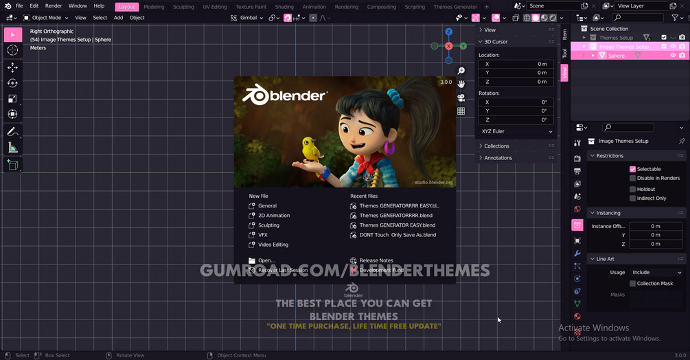⦿ This Blender Themes you can use in Blender version 2.80 until Blender Version 3.0, Already Tested.