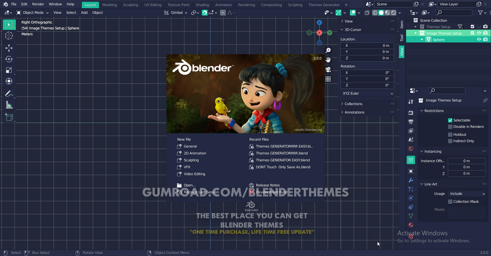 ⦿ This Blender Themes you can use in Blender version 2.80 until Blender Version 3.0, Already Tested.