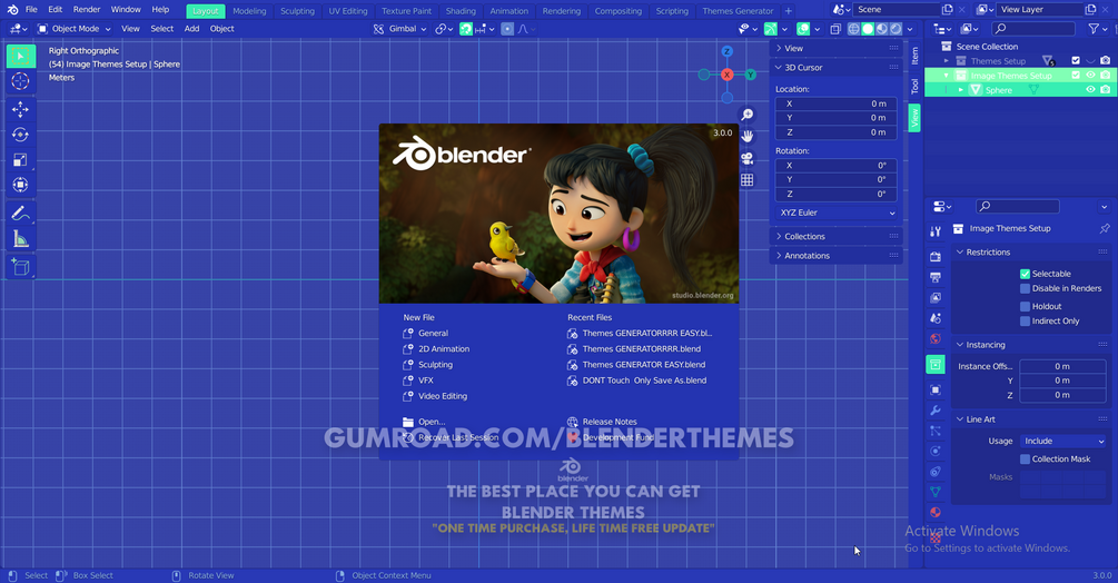 ⦿ This Blender Themes you can use in Blender version 2.80 until Blender Version 3.0, Already Tested.