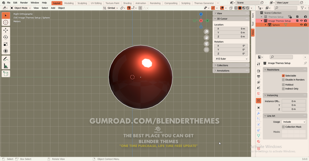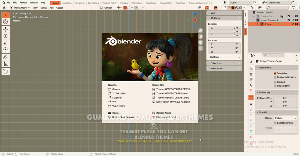 ⦿ This Blender Themes you can use in Blender version 2.80 until Blender Version 3.0, Already Tested.