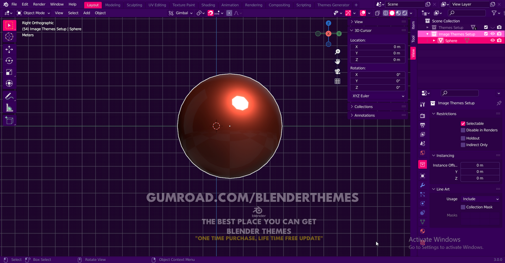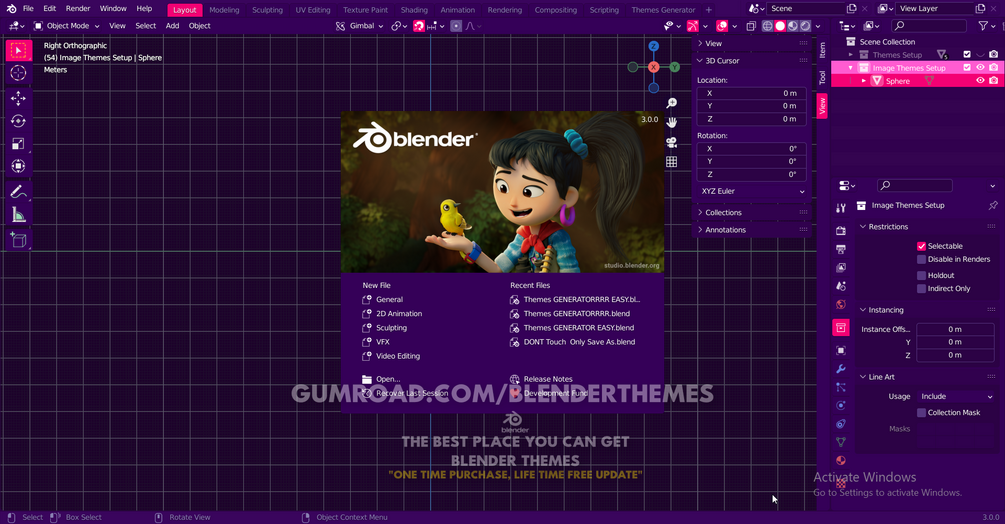 ⦿ This Blender Themes you can use in Blender version 2.80 until Blender Version 3.0, Already Tested.