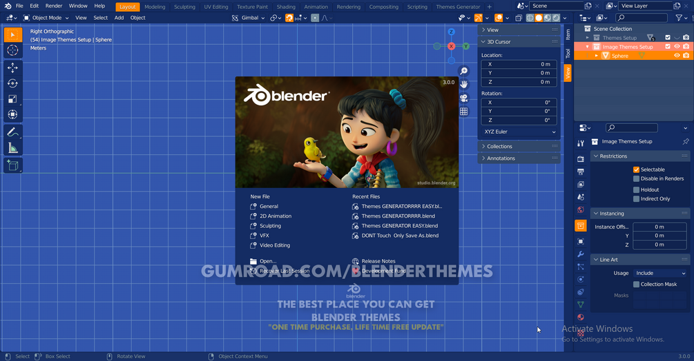 ⦿ This Blender Themes you can use in Blender version 2.80 until Blender Version 3.0, Already Tested.